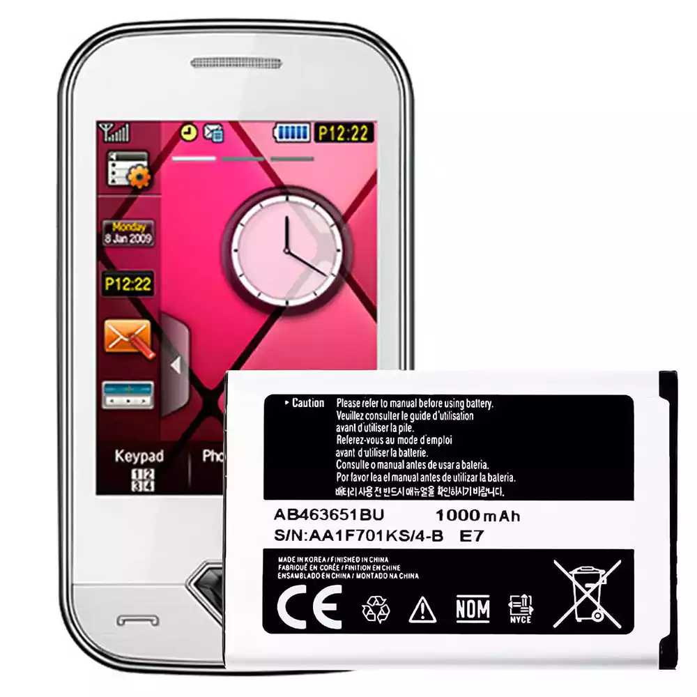 電池 AB463651BU 適用於 Samsung S3650 Corby/Ch@t 322/S3650 Genio Touch/C3222 Ch@t 322 DUOS/S7070 Marina/S7070 Diva La Fleur S7070/s3370 Corby 3G/Acton/Pocket3G Star Nano 3G