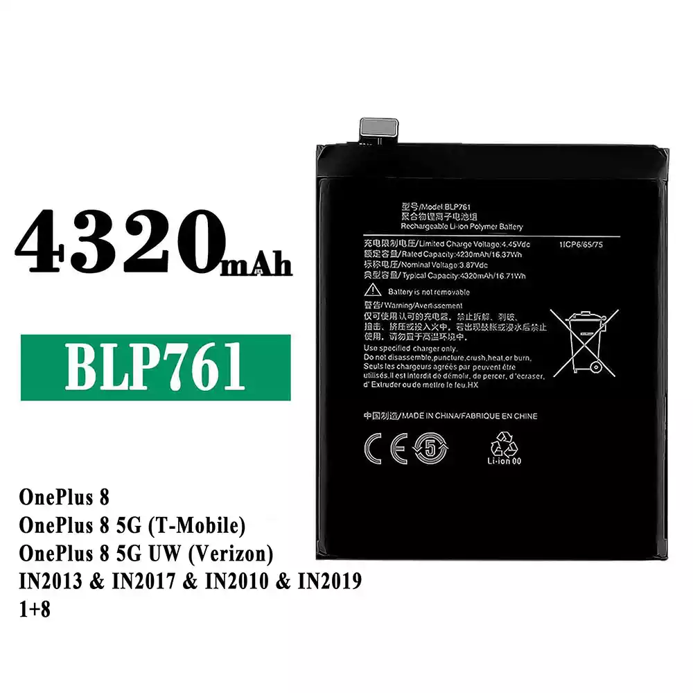 電池 BLP761 適用於 OPPO OnePlus 8 / OnePlus 8 5G (T-Mobile) / OnePlus 8 5G UW (Verizon) / IN2013 / IN2017 / IN2010 / IN2019 1+8