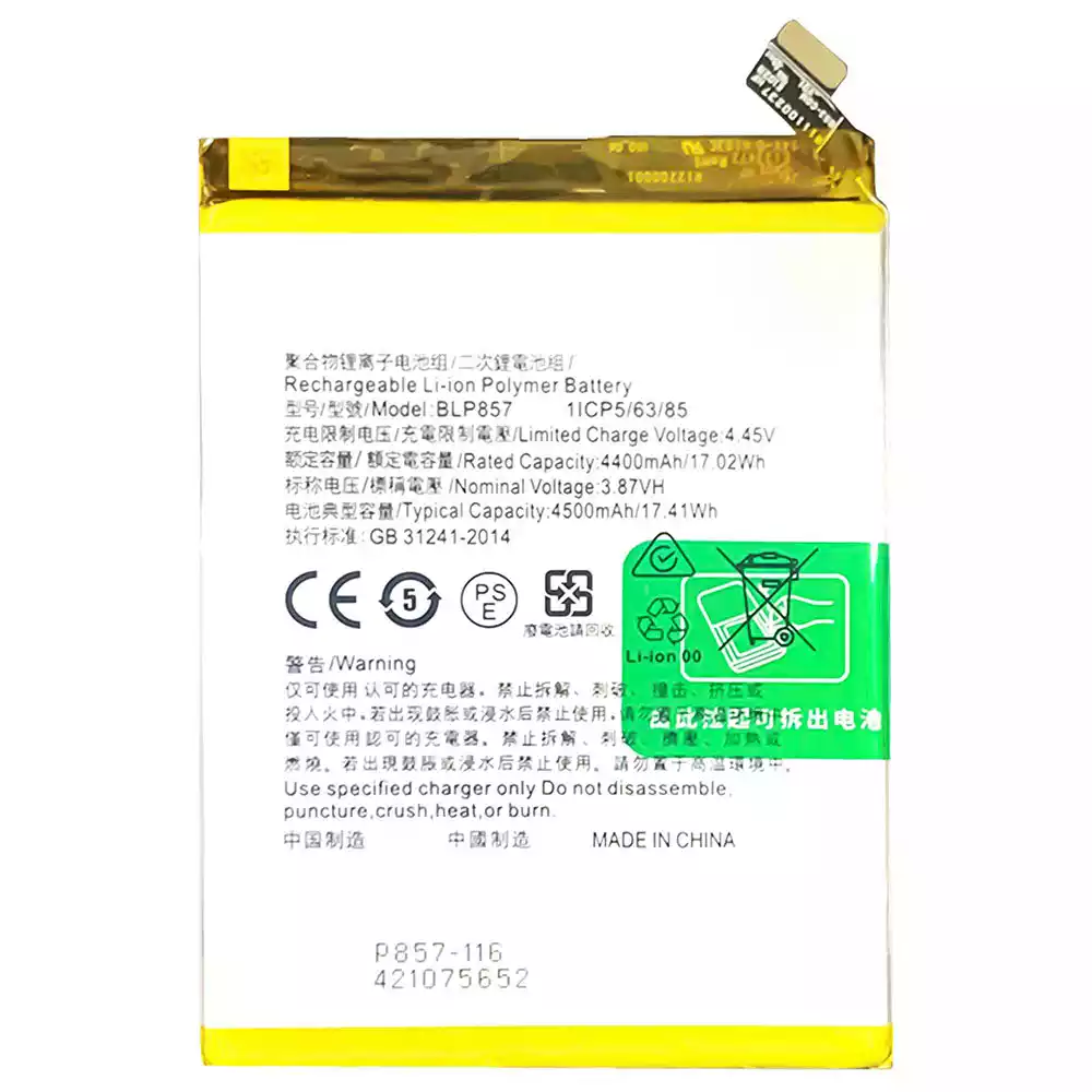 電池 BLP857 適用於 OPPO Realme Q3 Pro / GT NEO / X7 Max /