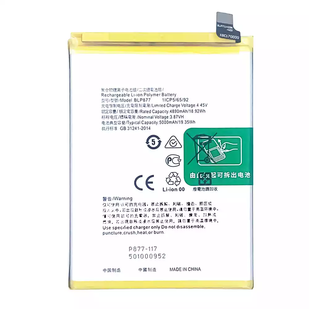 電池 BLP877 適用於 OPPO Realme 8i / C31 / Realme C30 / Realme Narzo 50IPrime / Realme C33 / Realme C30S / Realme 9i 5G / Realme Narzo 50A Prime