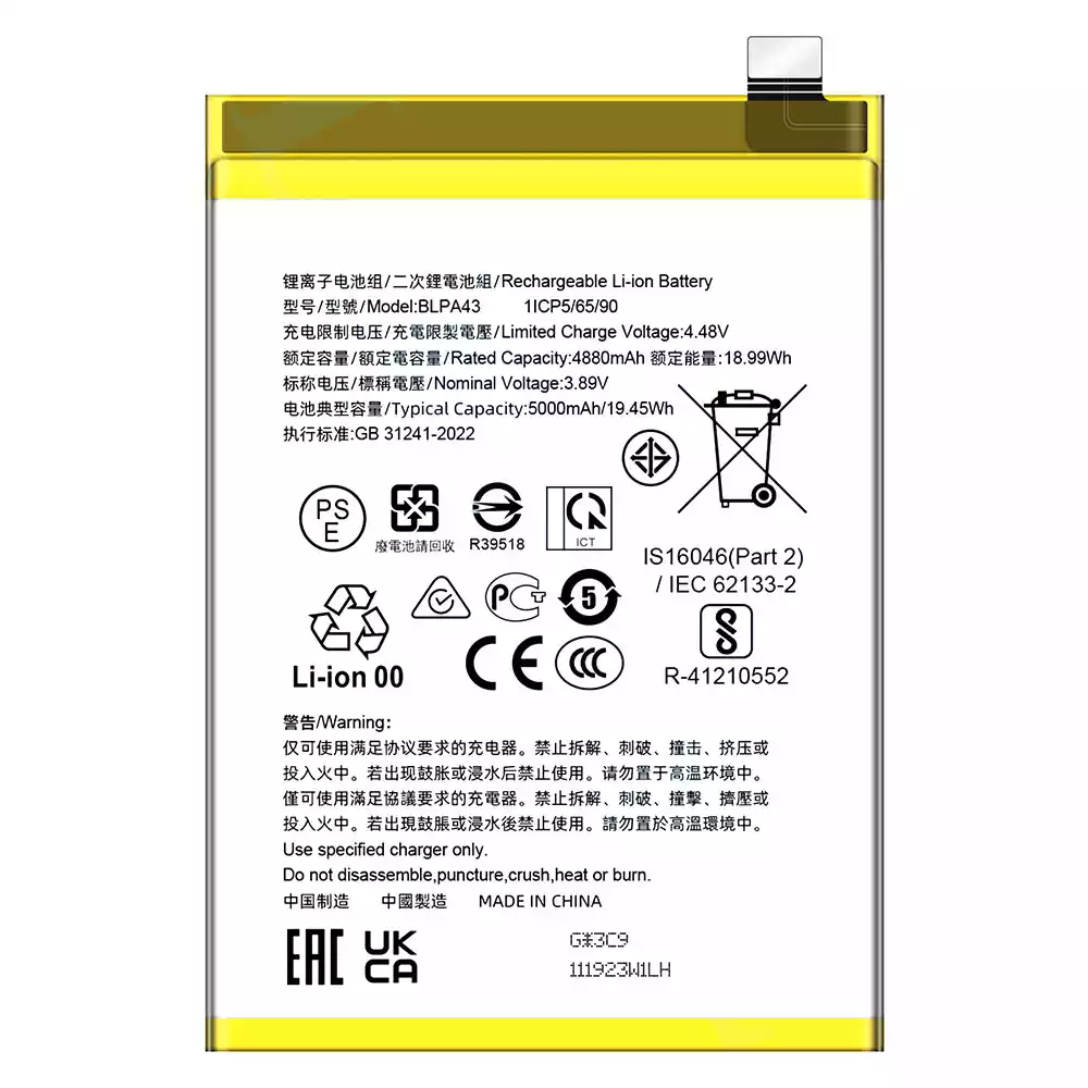 電池 BLPA43 適用於 OPPO Realme 12 Plus 5G/Realme 13