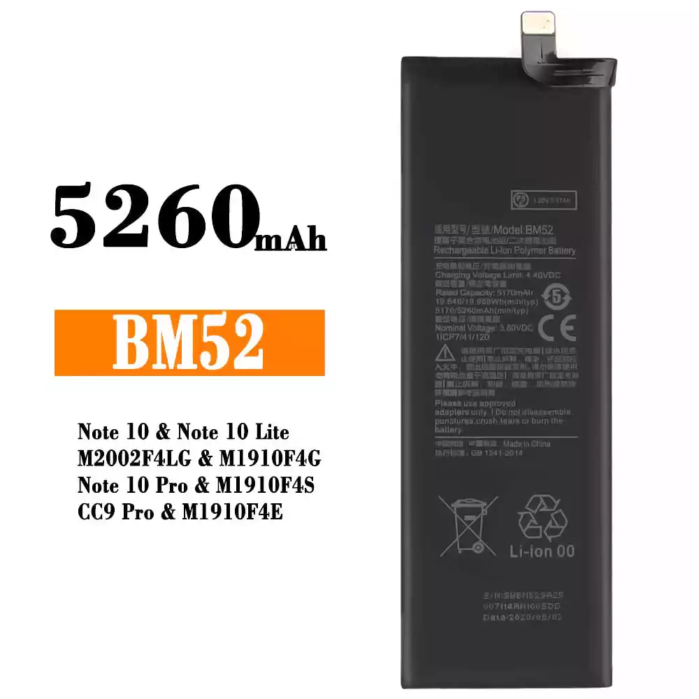 電池 BM52 適用於 Xiaomi Note 10 / Note 10 Lite / M2002F4LG / M1910F4G / Note 10 Pro / M1910F4S / CC9 Pro / M1910F4E