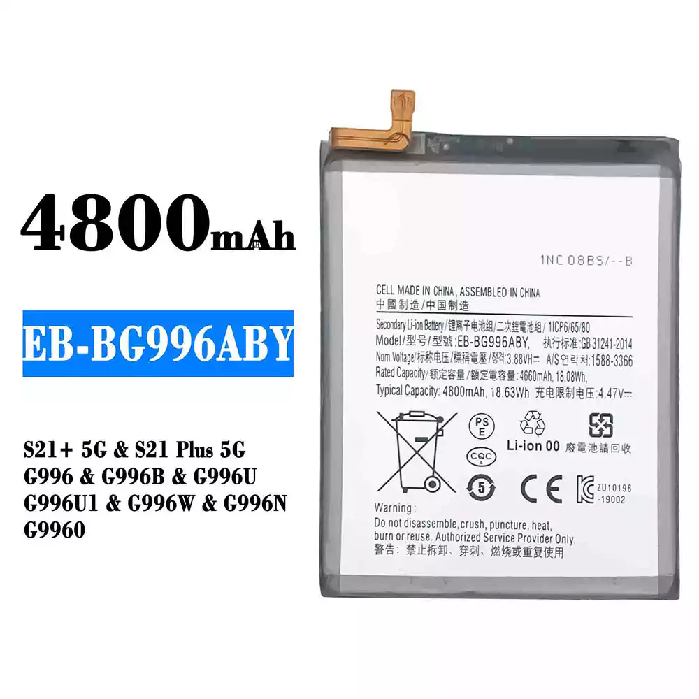 電池 EB-BG996ABY 適用於 Samsung S21+ 5G/S21 Plus 5G/G996/G996B/G996U/G996U1/G996W/G996N/G9960