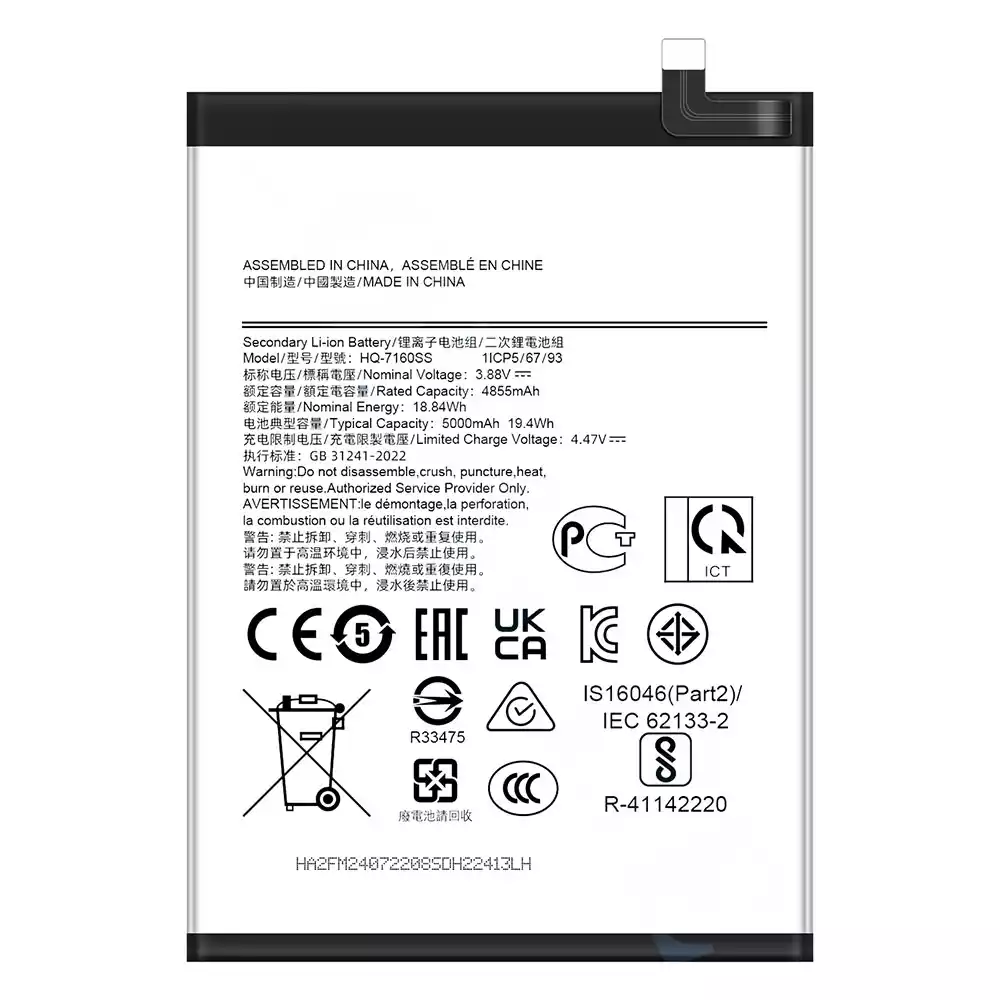 電池 HQ-7160SS 適用於 Samsung Galaxy A06/SM-A065F/SM-A065F DS