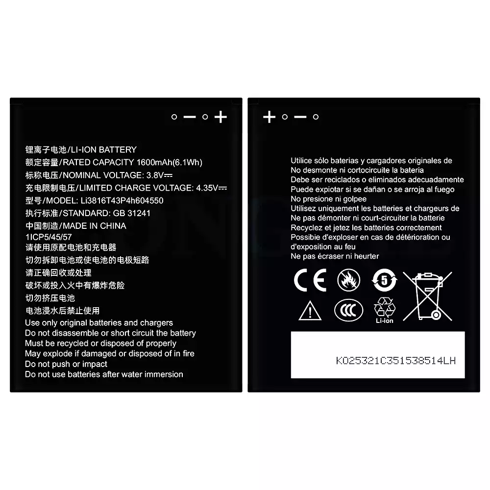 電池 Li3814T43P4h604550 適用於 ZTE Blade L130/Z2335CA/Grand MAX 4550