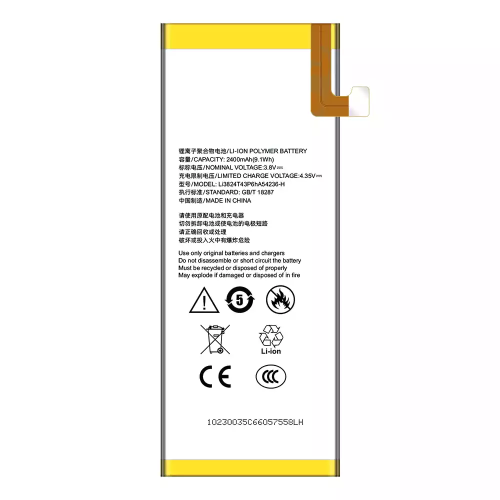 電池 Li3824T43P6hA54236-H 適用於 ZTE Blade S6 5.0/G717C/G718C 2400