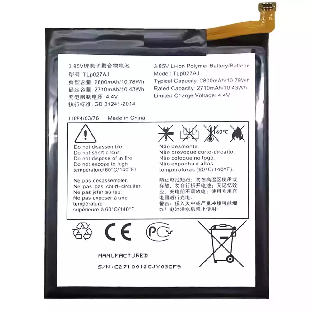 電池 TLP027AJ 適用於 Alcatel A5 LED/OT5085/5085I/5085Q/5085D