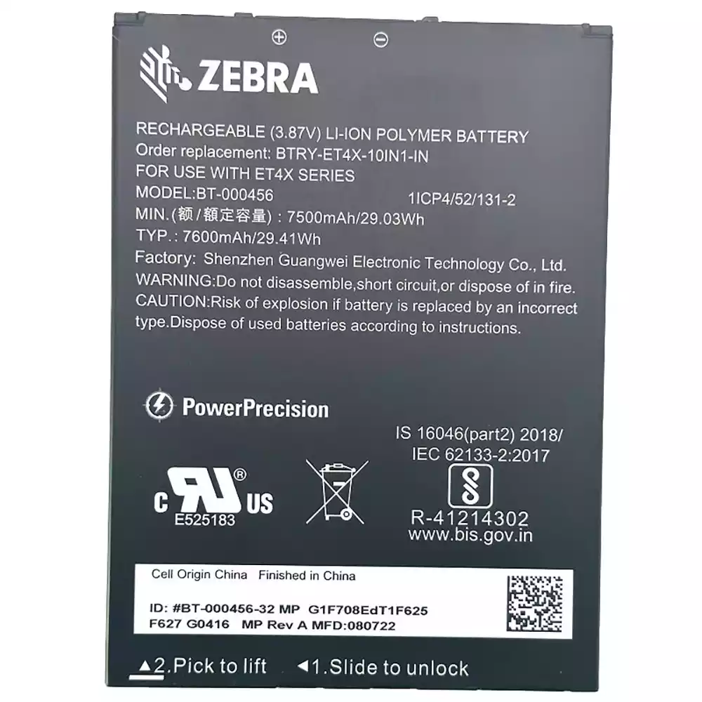 電池適用於 ZEBRA BTRY-ET4X-10IN1-IN BT-000456
